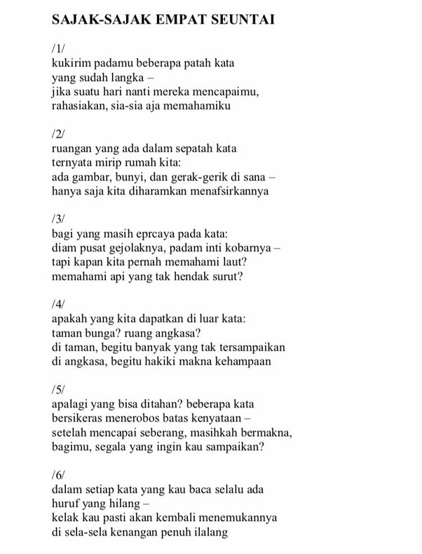 Puisi secara umum menggunakan gaya bahasa yang ringkas, . Kemerdekaan bangsa indonesia ditandai dengan .